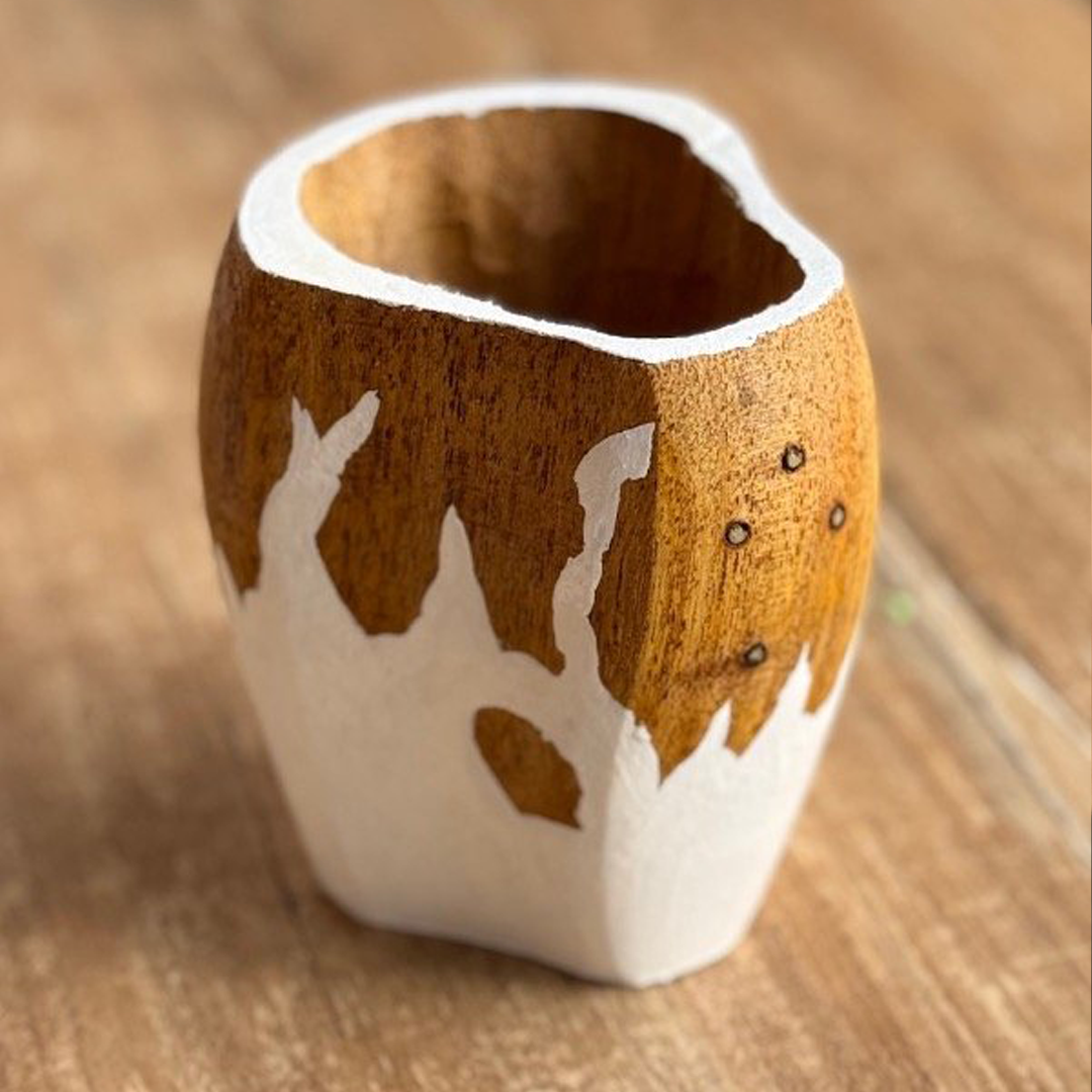 ➡️ Mate Rupestre de Madera de algarrobo, tallado a mano en su totalidad, estilo rústico y sin virola. Con 4 clavos de acero.