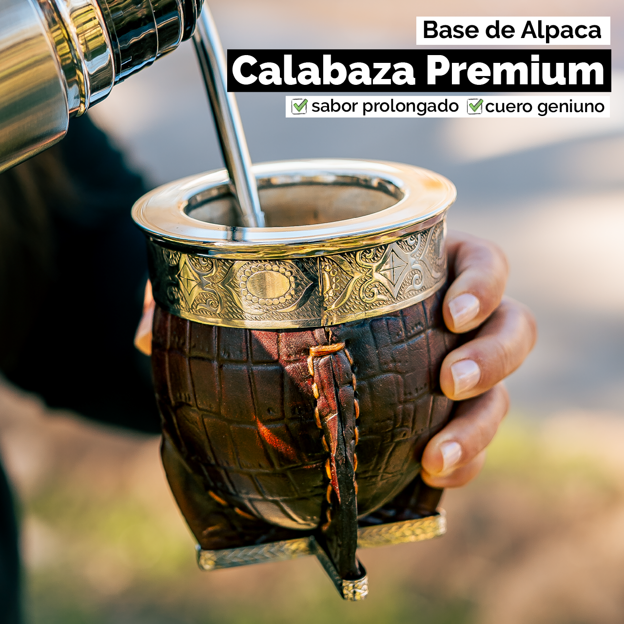 Mate Imperial (Calabaza) con Cuero Labado - Base y Virola de Alpaca