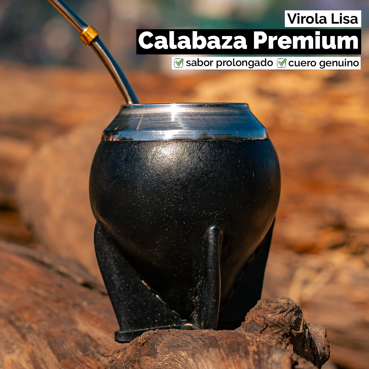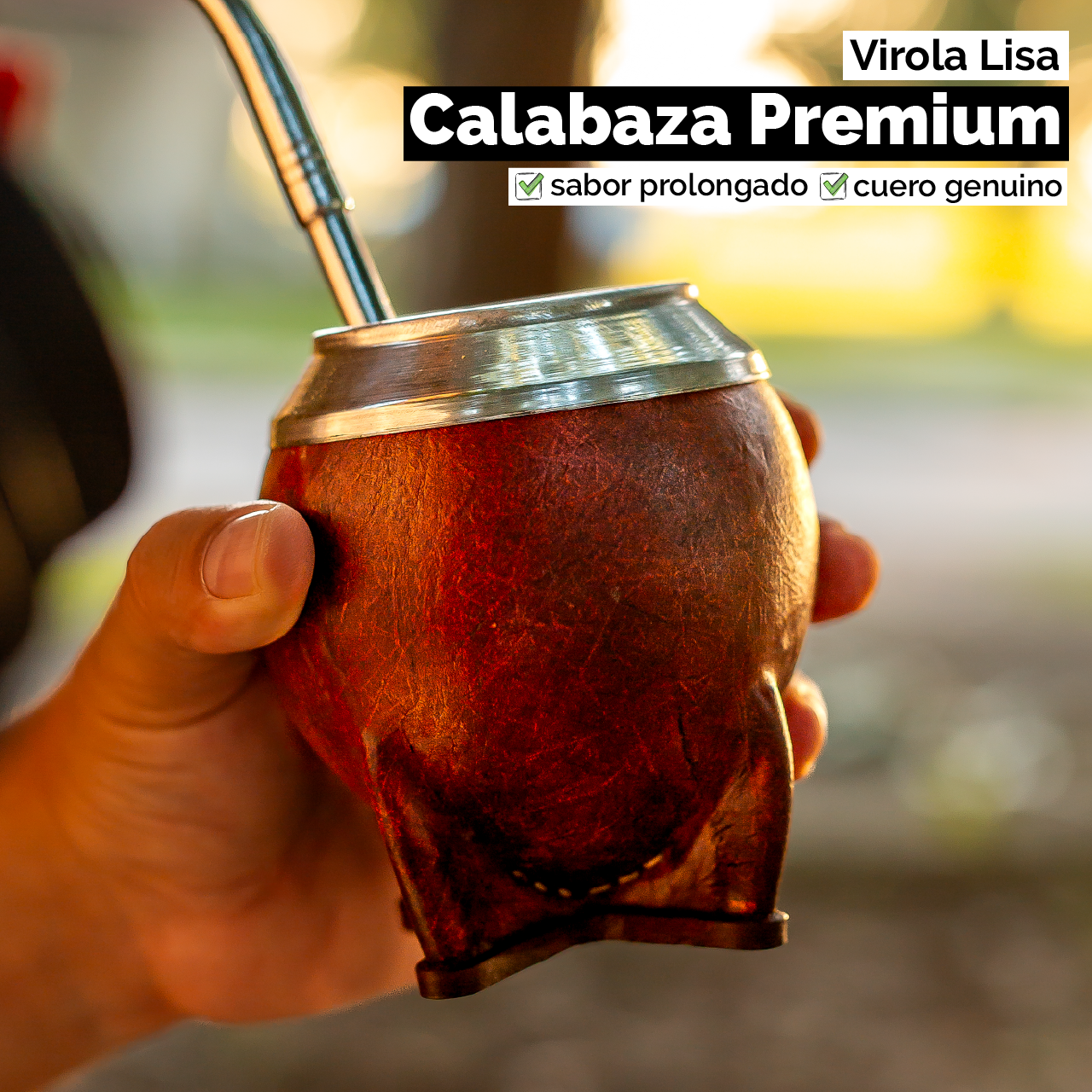🧉 Mate Torpedo de Calabaza, con virola acero inoxidable, forrados en cuero.