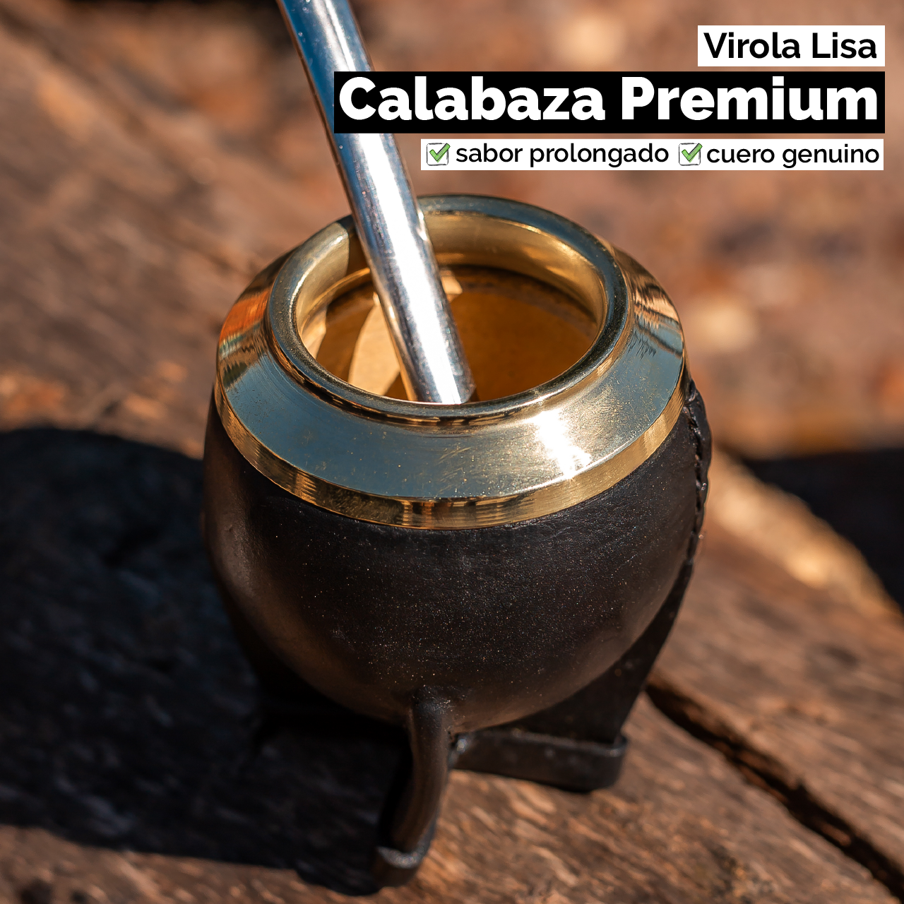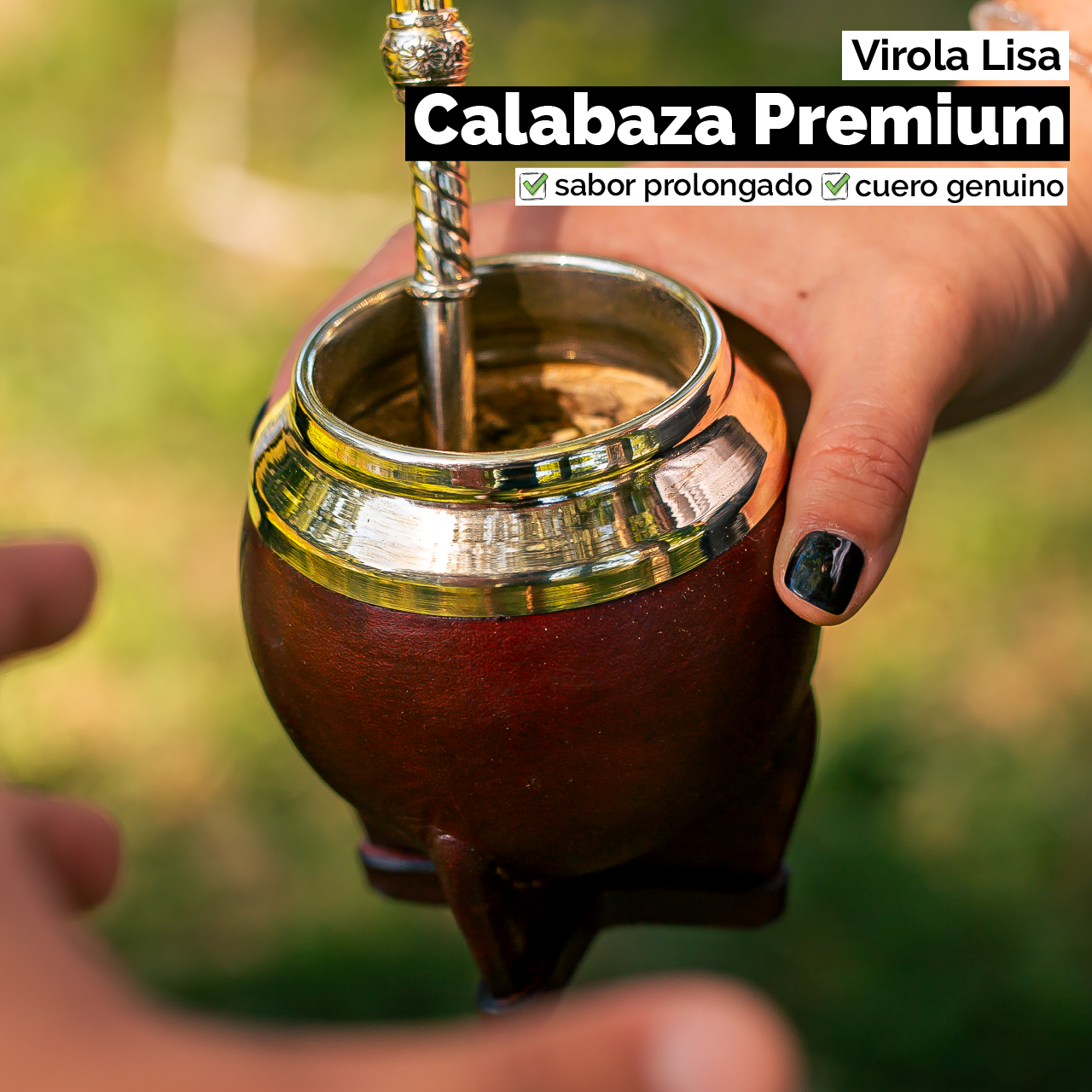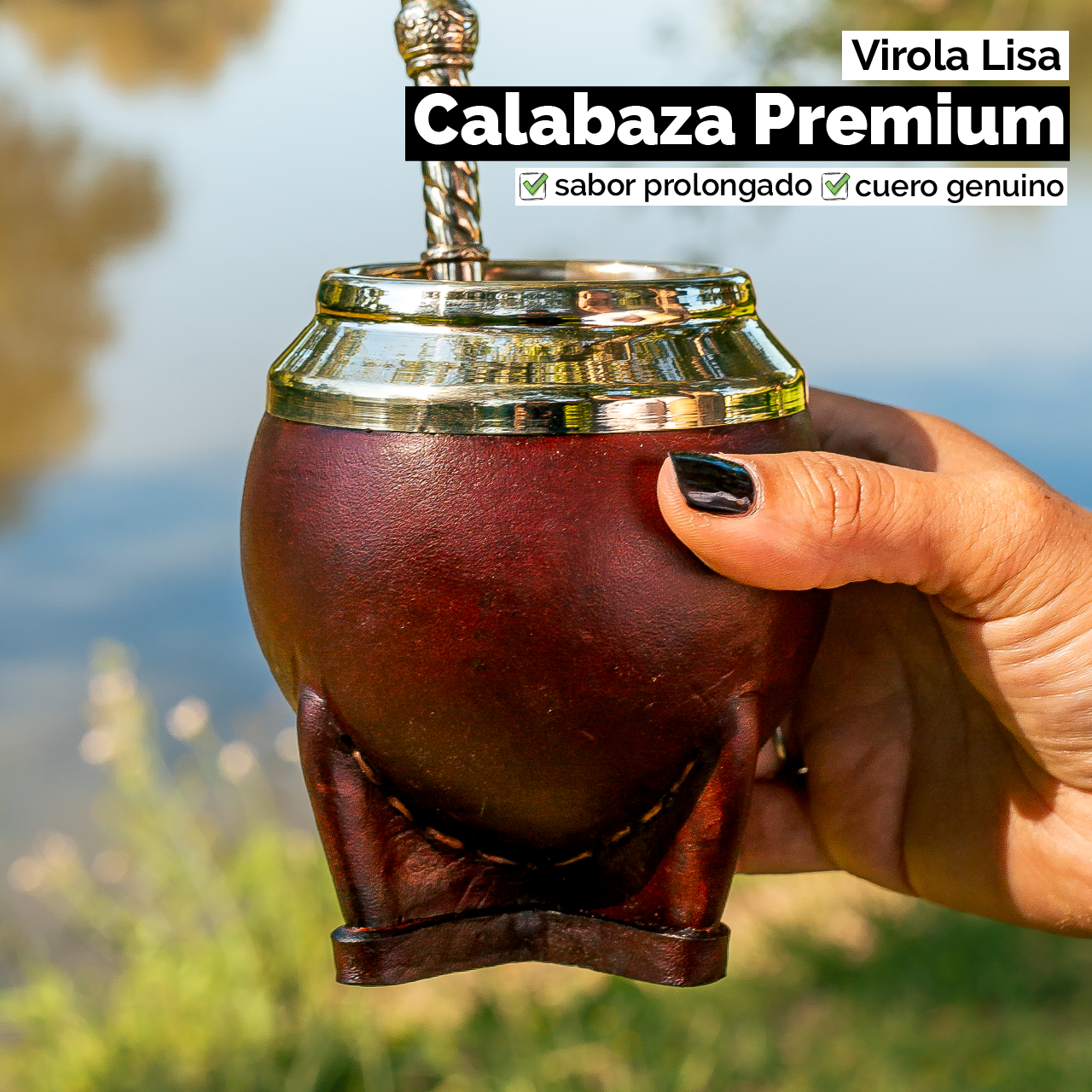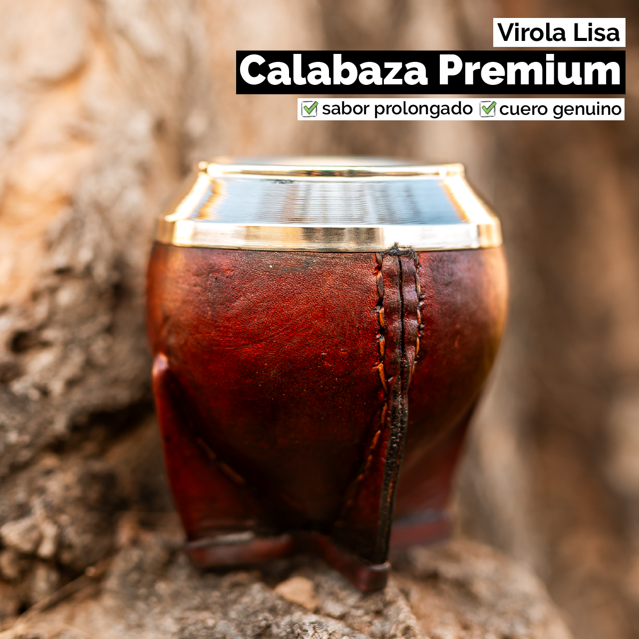 🧉 Mate Torpedo de Calabaza, con virola de alpaca, forrados en cuero.