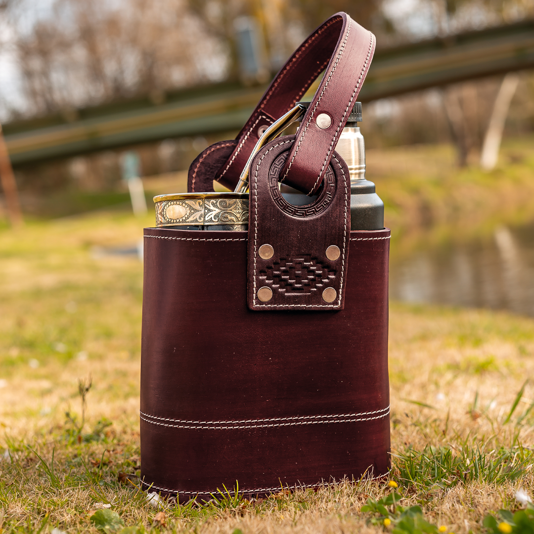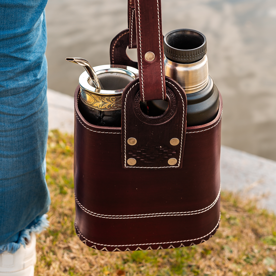 ➡️ Canasto Matero 100% cuero genuino. Con división interna y manija para llevar.