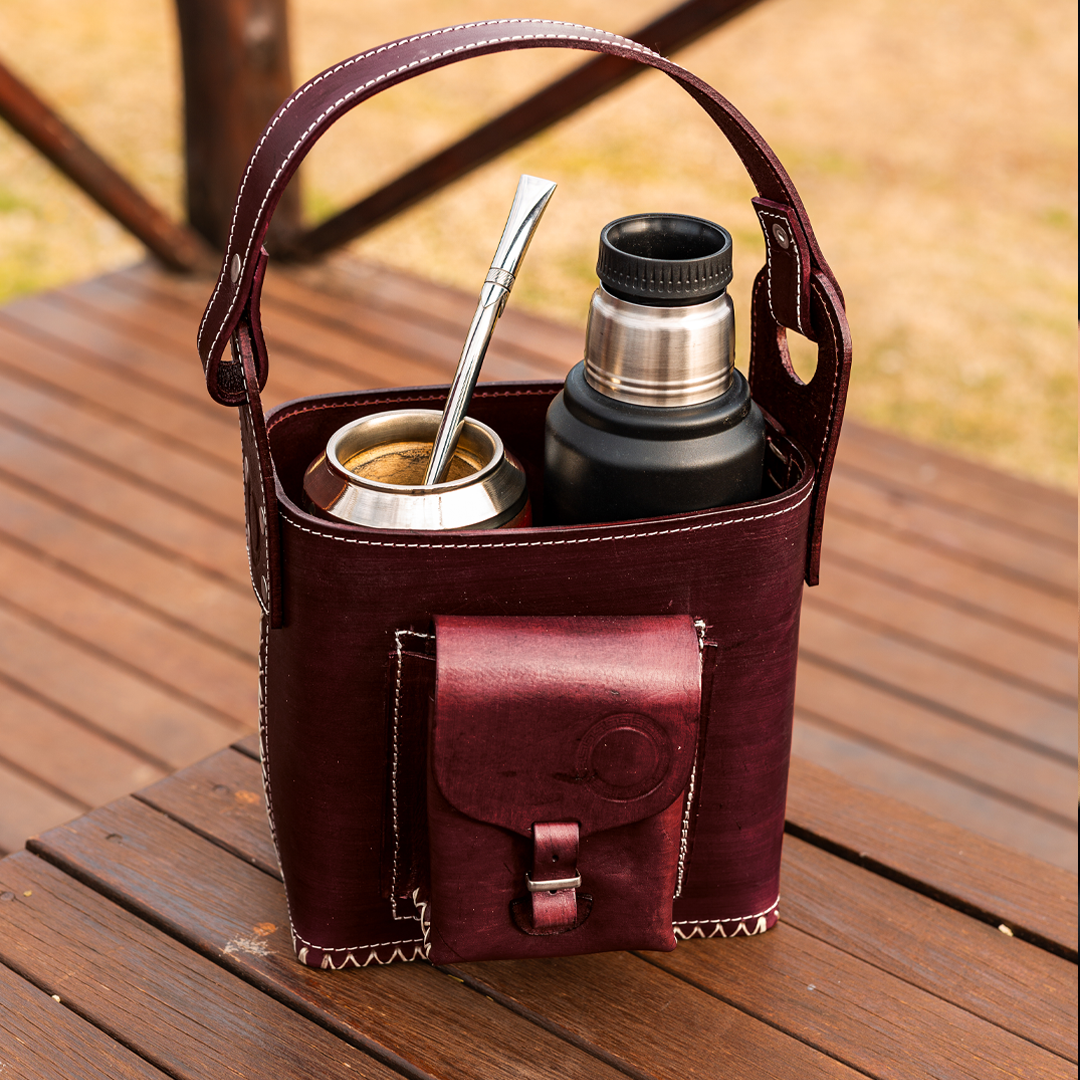 ➡️ Canasto Matero 100% cuero genuino. Con manija para llevar y bolsillo exterior.