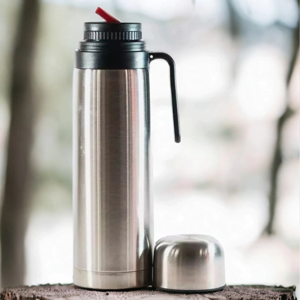 ✔️ Incluye termo de un litro, de acero inoxidable.